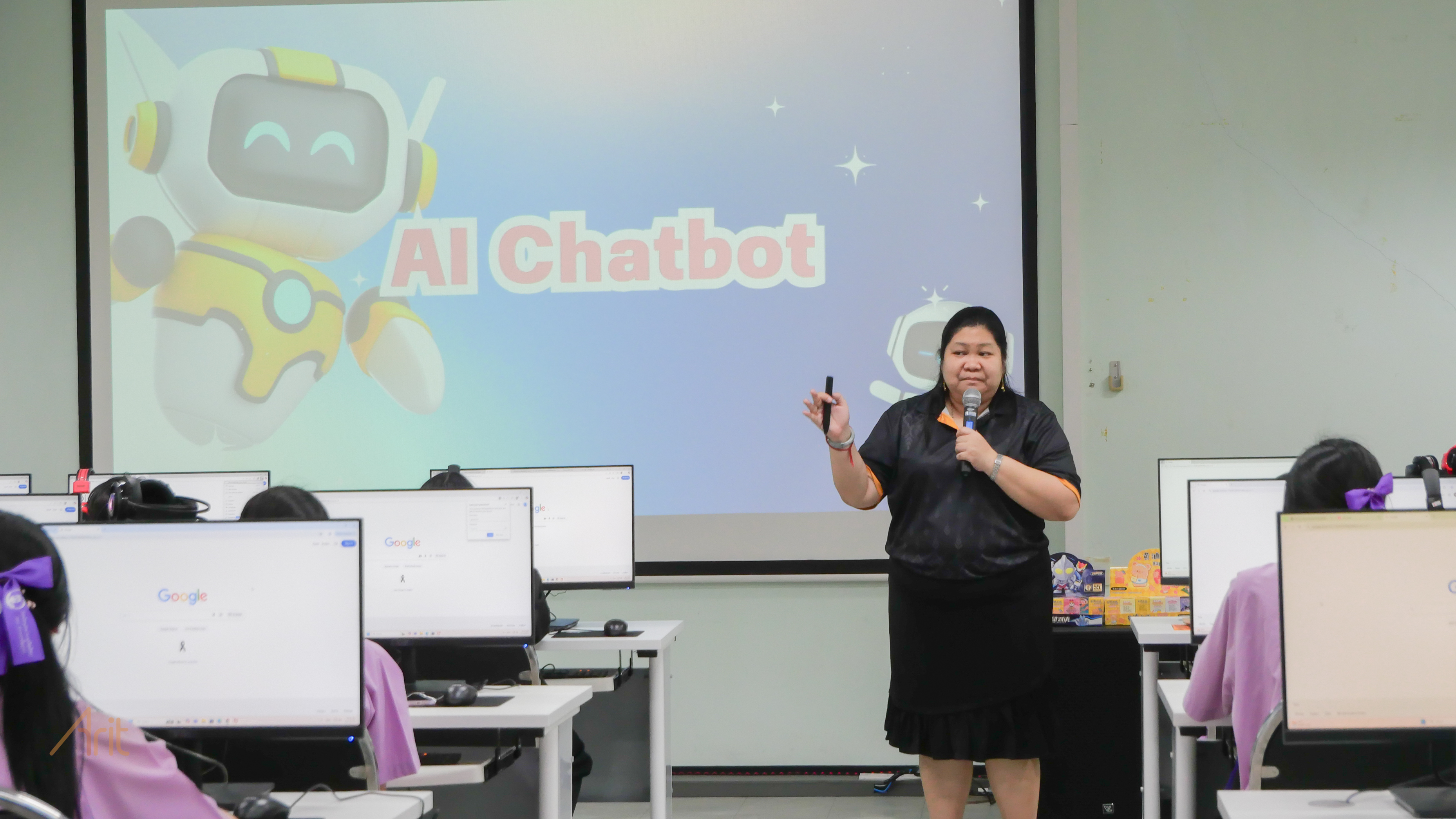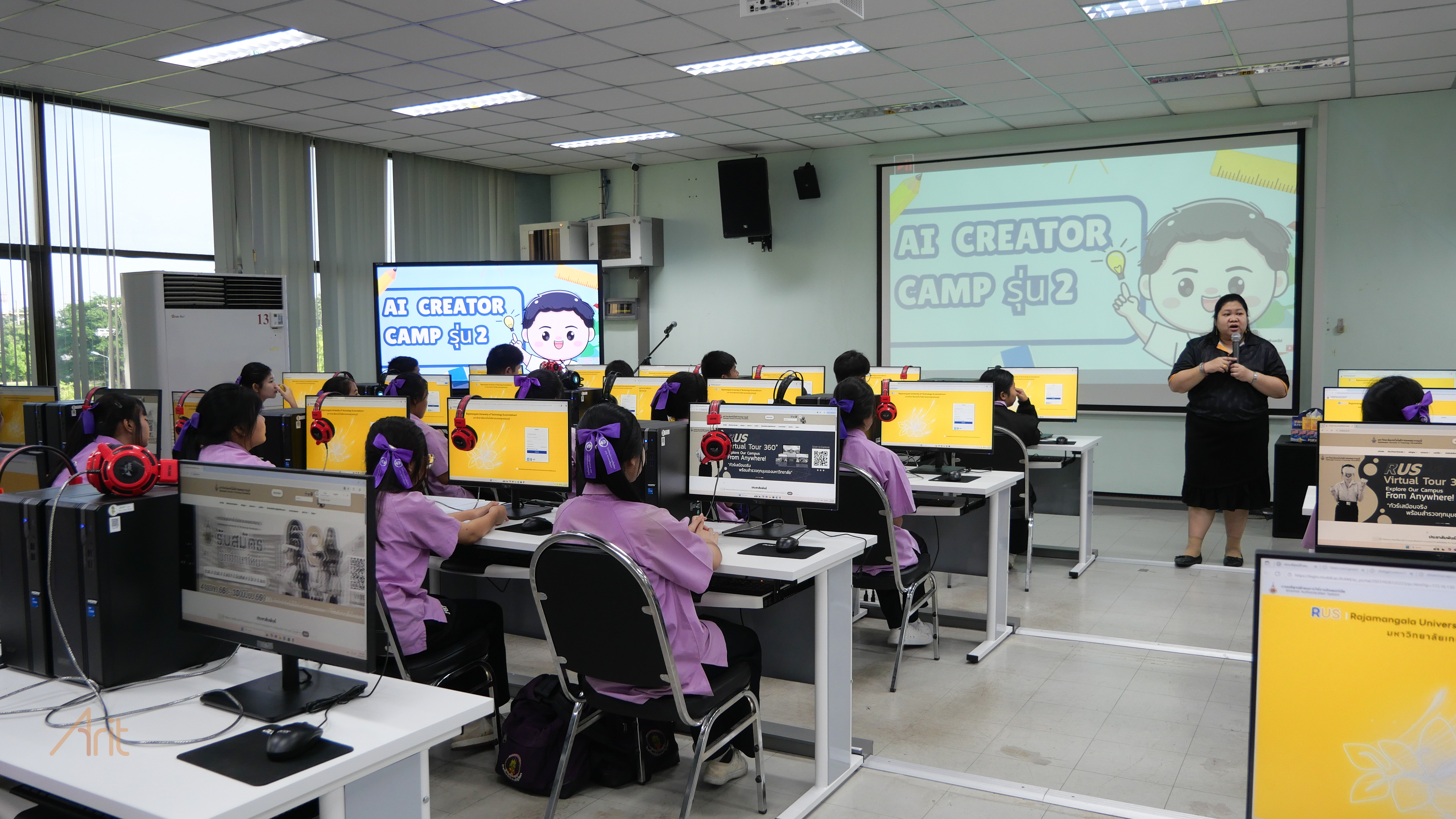การอบรมเชิงปฏิบัติการ “AI Creator Camp” จัดขึ้นระหว่างวันที่ 10 – 13 พฤศจิกายน 2568 มีนักเรียนระดับมัธยมศึกษาตอนปลาย โรงเรียนวัดป่าคาเจริญวิทยา เข้าร่วมจำนวน 120 คน แบ่งเป็น 2 รุ่น รุ่นละ 2 วัน โดยมี ผู้ช่วยศาสตราจารย์ ดร.บุญธิดา ชุนงาม รองผู้อำนวยการสำนักวิทยบริการและเทคโนโลยีสารสนเทศเป็นวิทยากร และนางสาวผกาแก้ว บุญวาส นักวิชาการศึกษา สำนักวิทยบริการและเทคโนโลยีสารสนเทศ เป็นผู้ช่วยวิทยากร
