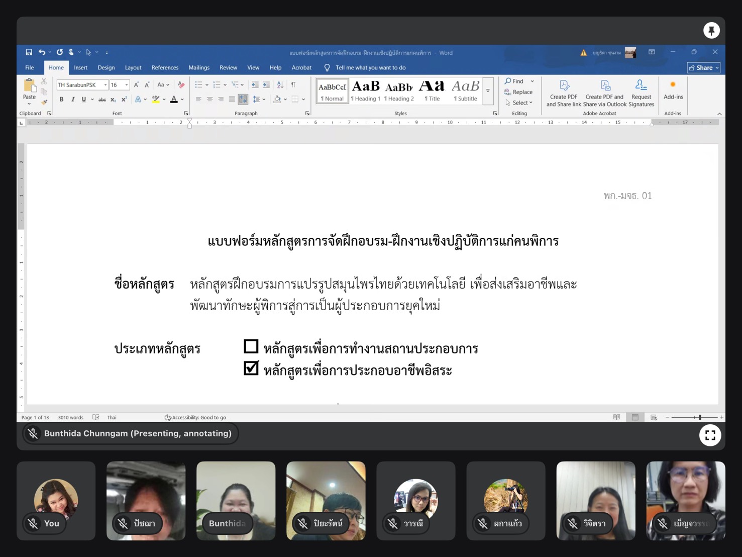 ประชุมแบบฟอร์มหลักสูตรการจัดฝึกอบรม-ฝึกงานเชิงปฏิบัติการแก่คนพิการ