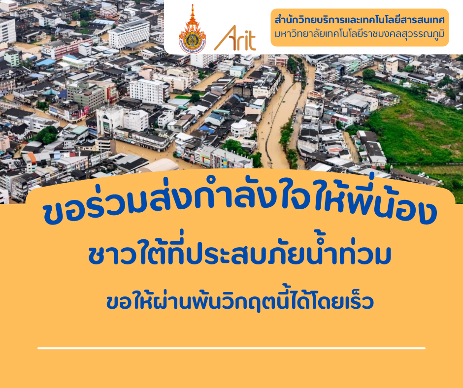 สำนักวิทยบริการและเทคโนโลยีสารสนเทศ ขอร่วมส่งกำลังใจให้พี่น้องชาวใต้ที่ประสบภัยน้ำท่วม