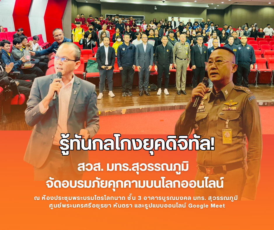 รู้ทันกลโกงยุคดิจิทัล! สวส. มทร.สุวรรณภูมิ จัดอบรมภัยคุกคามบนโลกออนไลน์ | ครั้ง เมื่อ 23 ชั่วโมงที่แล้ว