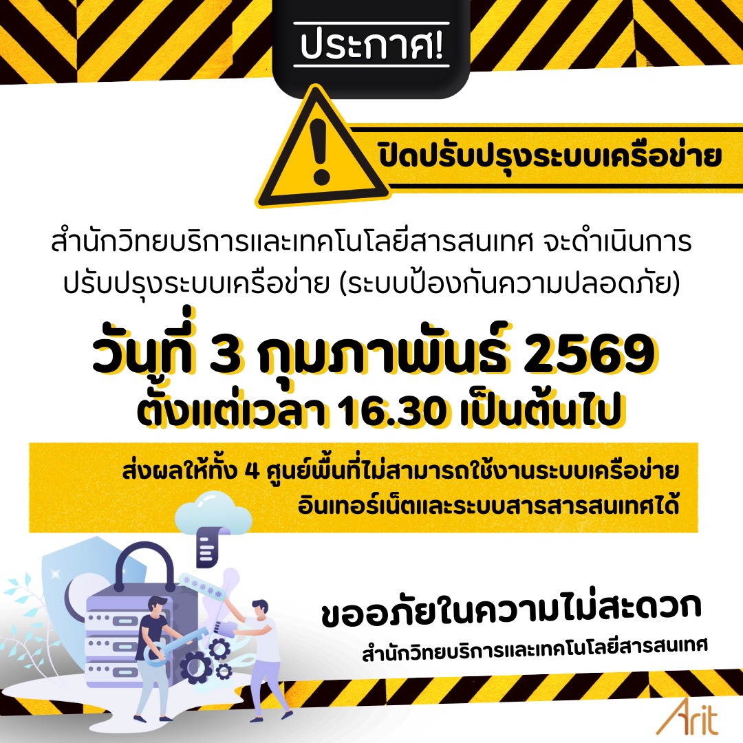 ประกาศ ปิดปรับปรุงเครือข่าย วันที่ 3 ก.พ. 69 | ครั้ง เมื่อ 1 ชั่วโมงที่แล้ว